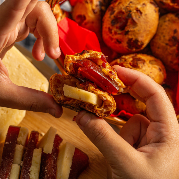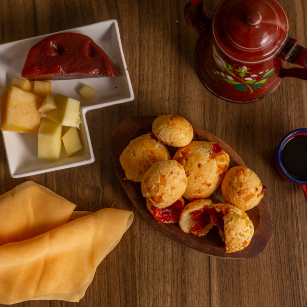 Feito com queijo mussarela e parmesão em lascas + goiabada caseira. Todos queijos ralados na fábrica.